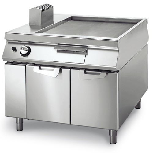 Virtus Gas griddle smooth chromed on cabinet with door, two-sided panel control