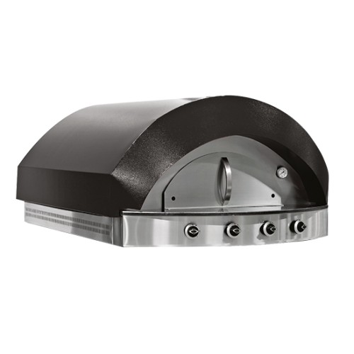 Single chamber pizza oven (gas). Color: Black. Operation with natural gas and propane gas (standard delivery with natural gas). Manual temperature control. Safety thermostat. High quality gas burners. Each burner is individually controllable. Safety valve. Optimal heat distribution. Easy to use. Modern design. Easy to clean.